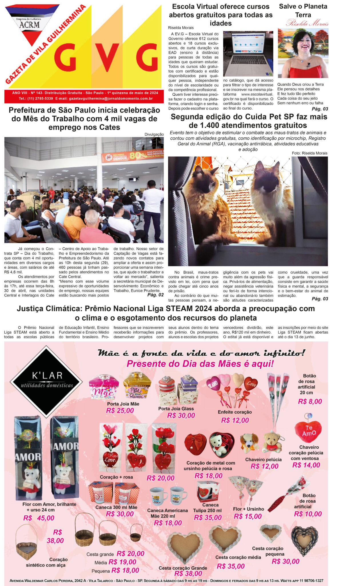 O Jornal do Momento News e o Jornal Polo Paulistano são publicações quinzenal e o Gazeta de Vila Guilhermina é uma publicação mensal. Todos em formato standard, com páginas coloridas em papel jornal, escrito com linguagem simples, direta e de fácil compreensão, enriquecidos com fotos, tabelas e ilustrações que facilitam a leitura.